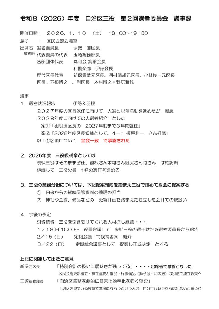 2026年1月第5回役員会
